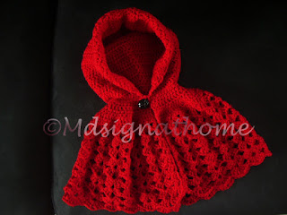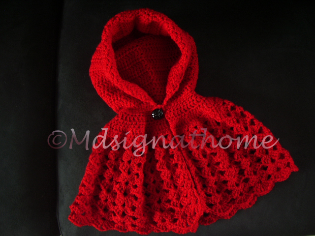 Mijn kleindochters zijn helemaal gek van roodkapje, en als hakende oma ontkom je er dan niet aan, rode wol, googlen en haken maar ....... de eerste roodkapje cape is af.......