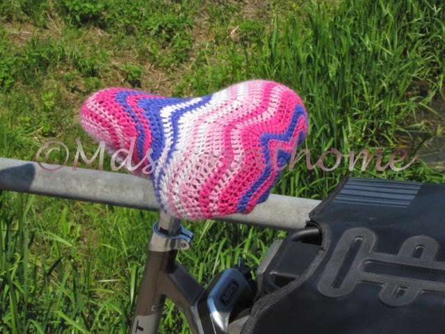 is op het fietszadel geƫindigd als zadeldekje, tot ik een ander gehaakt heb, vind het eigenlijk wel vrolijk staan...........